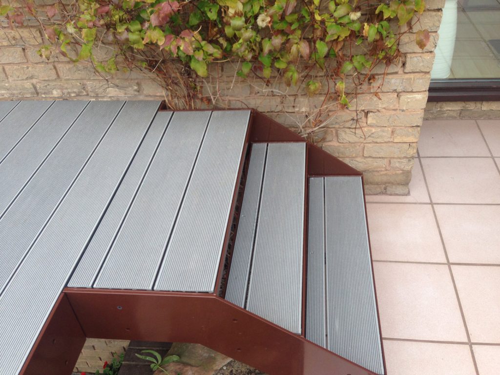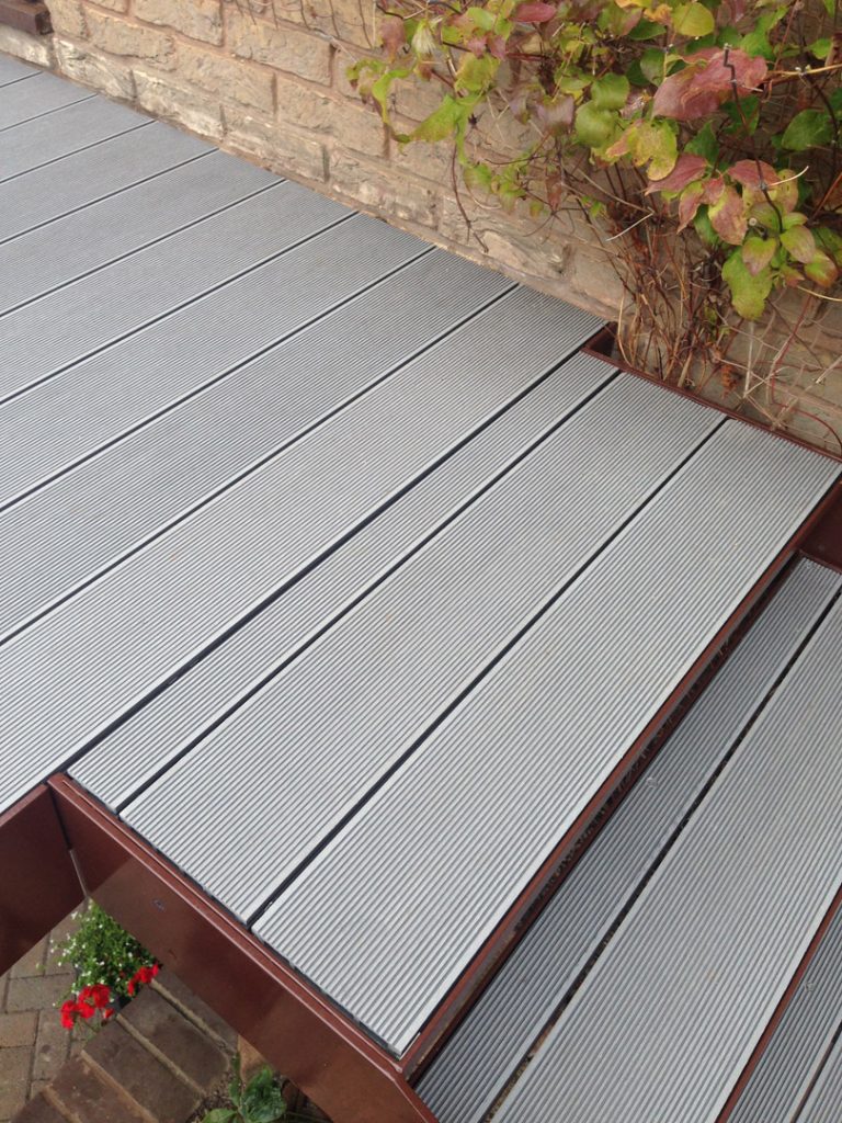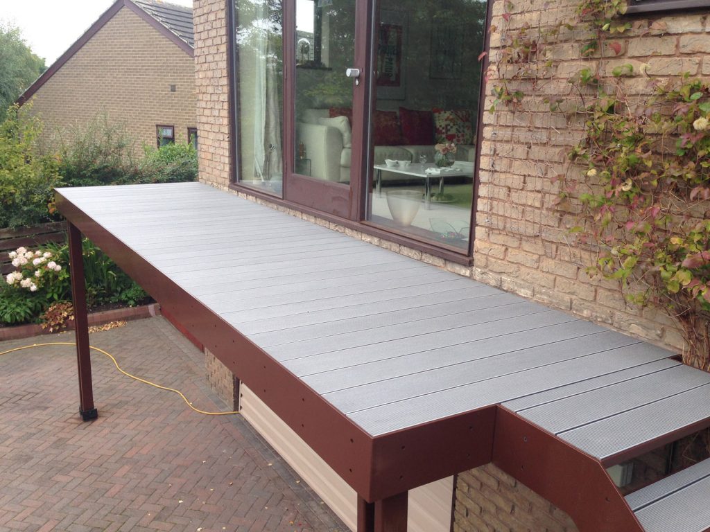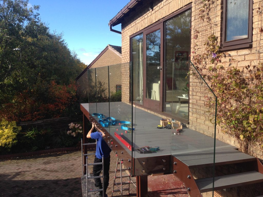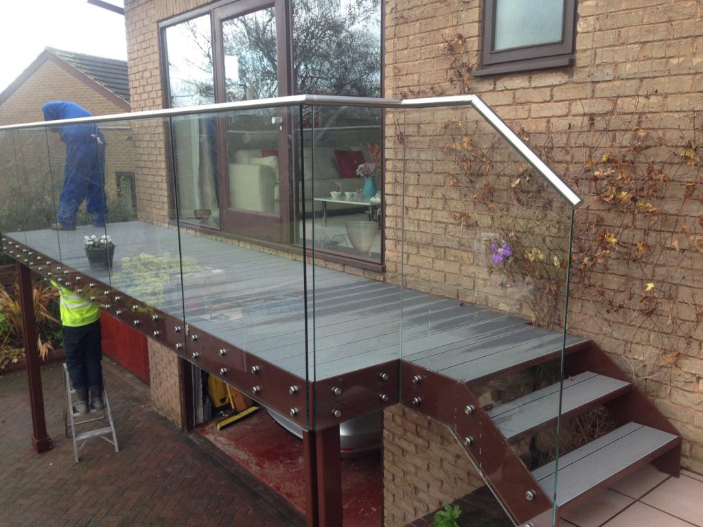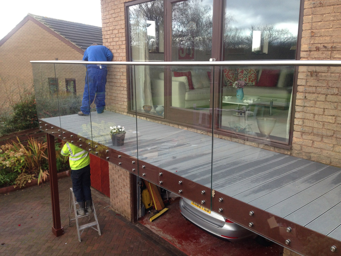 Composite decked balcony, Washington Home > Projects > Domestic > Composite decked balcony, Washington January '20 By Riverside Metalwork Composite decked balcony with steps with toughen frameless glass balustrade. Installed in Fatfield, Washington