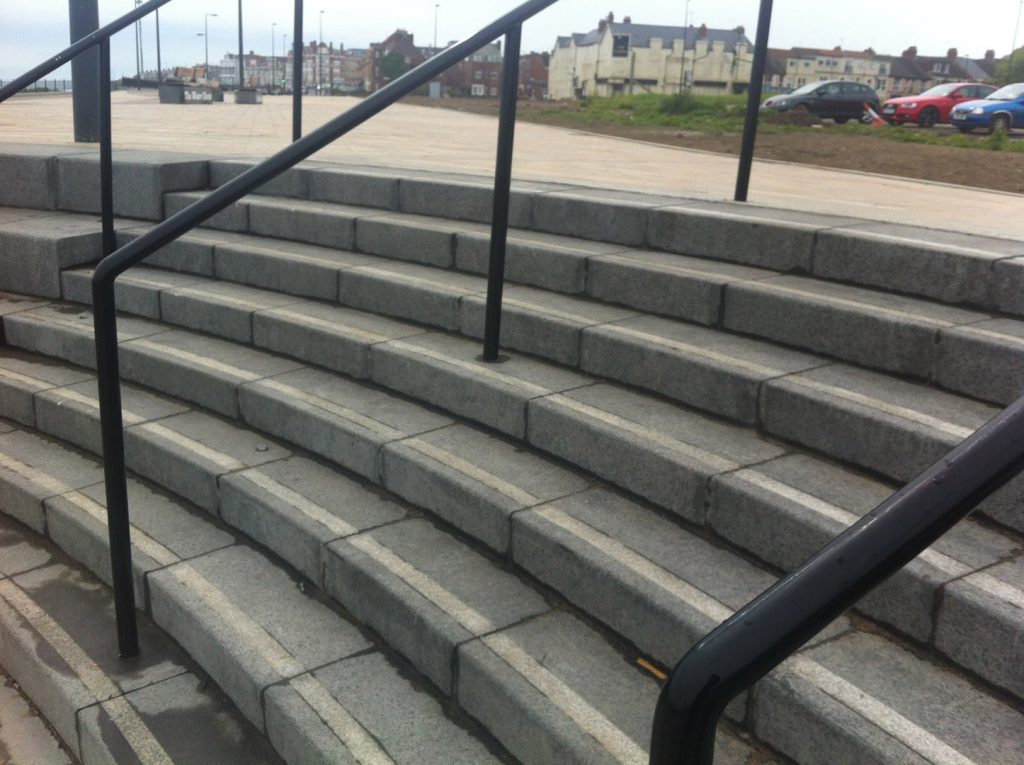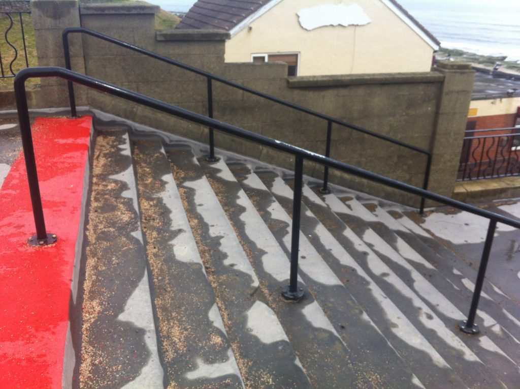 Coastal Metal handrail Whitley Bay Home > Projects > Commercial > Coastal Metal handrail Whitley Bay January '20 By Riverside Metalwork Metal hand rails for coastal stairs in Whitley Bay