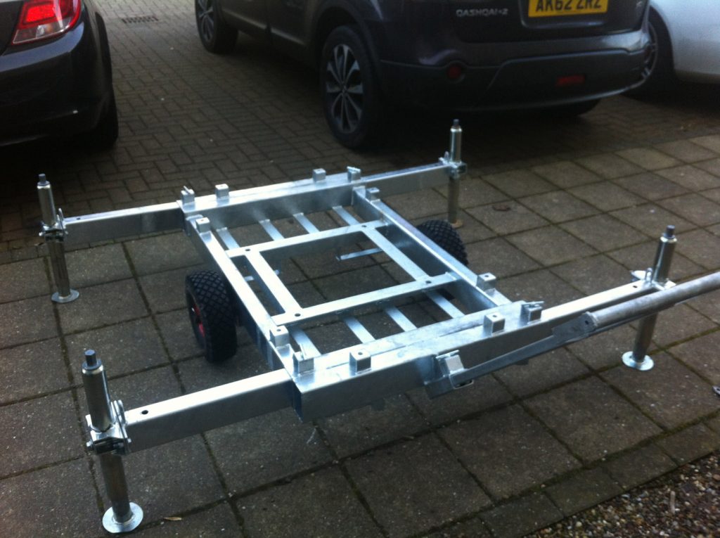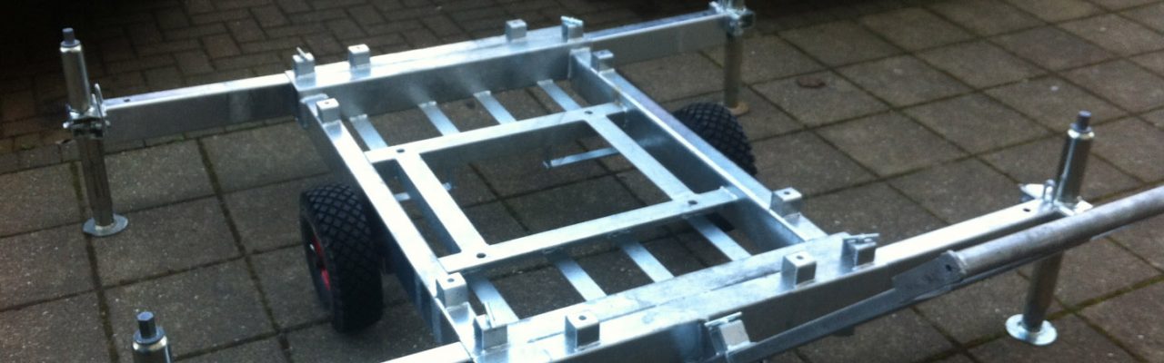 Bespoke mobile CCTV rigging, a galvanised steel box section rigging designed to support a CCTV mast with long reach outriggers.
