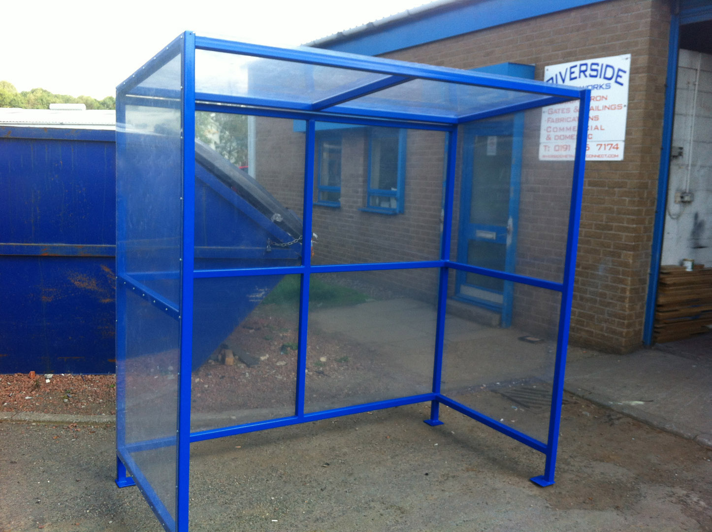 Metal fabricated shelter with polycarbonate panels Home > Projects > Commercial > Metal fabricated shelter with polycarbonate panels January '20 By Riverside Metalwork Metal fabricated shelter with polycarbonate panels installed with anti-tamper pop rivets.